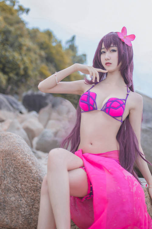 [萝莉COS] 木绵绵OwO – 沙滩斯卡哈 / 17P